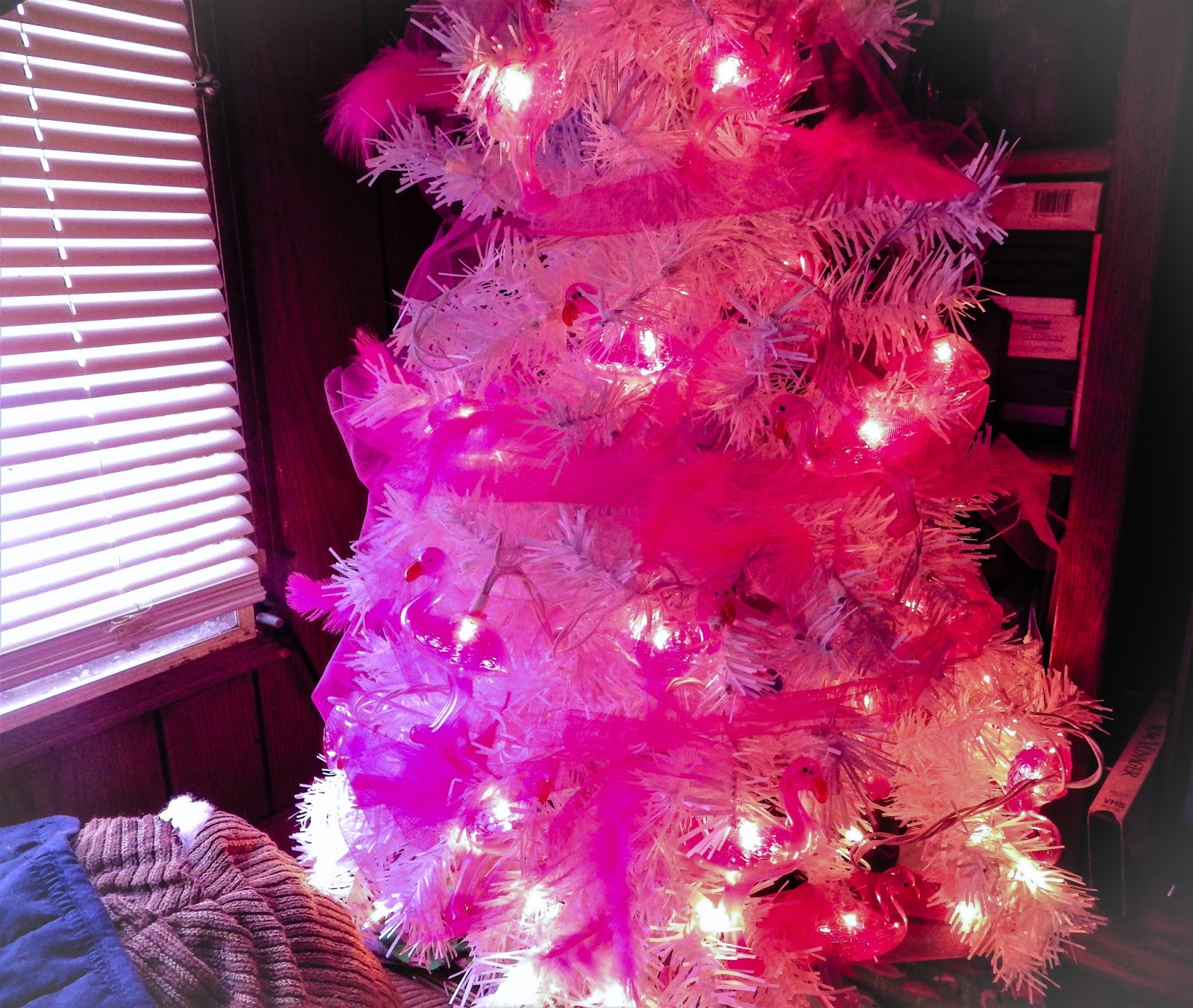 And, even though my family has questioned my sanity they loved the tree. And me in my flamingo dress, socks, shoes, and glasses.