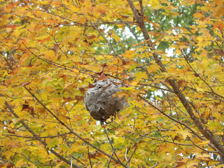 Is that a wasp nest in that tree? Scary! One day while I was trimming/pruning the trees, I didn't see wasp nest, but they let me know they were there once I cut the branch. They sure pack a wallop! It felt like a big guy had punched me in the back.